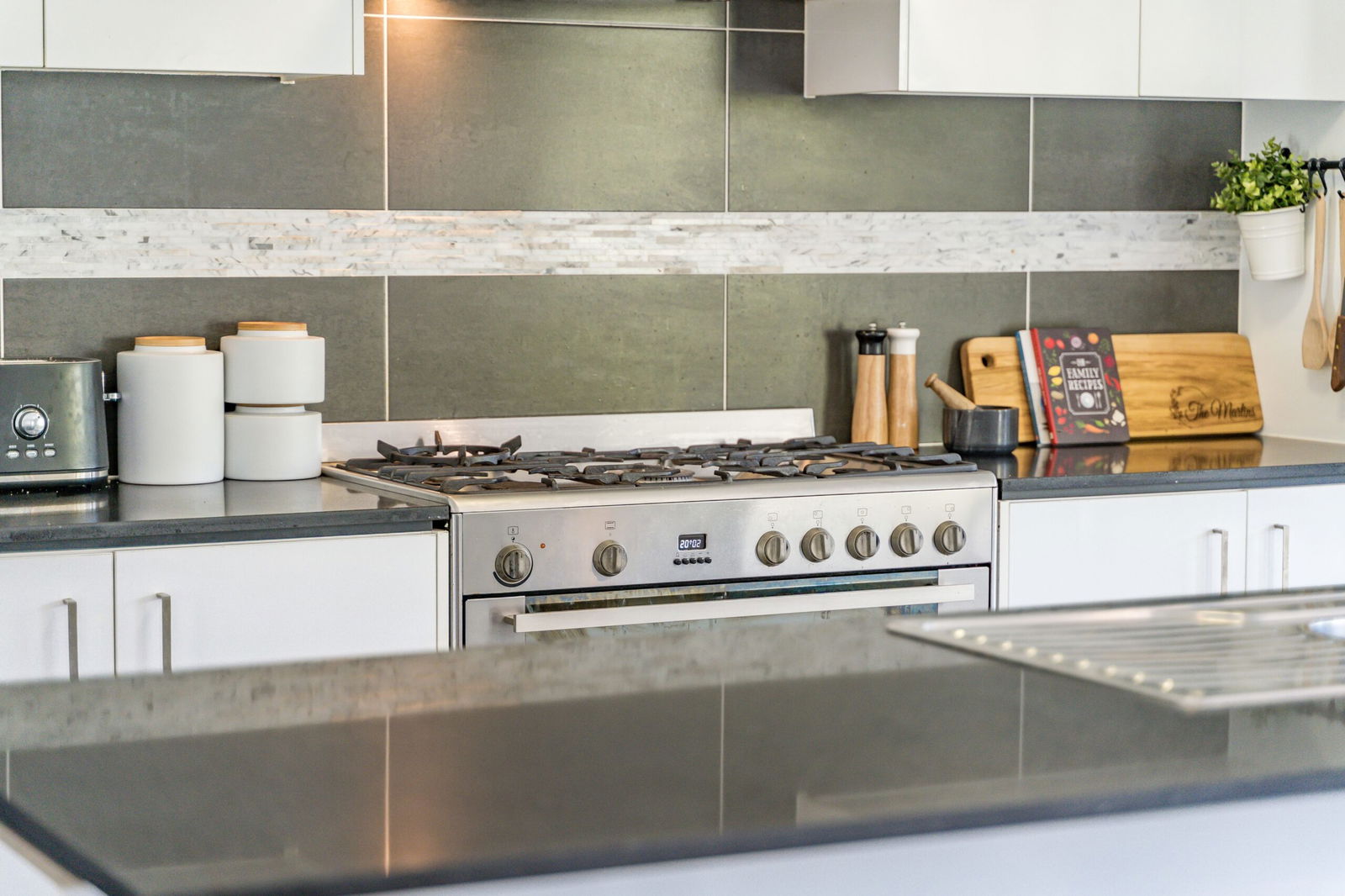 – Stylish kitchen with free standing 900mm oven with gas cooktop, rangehood, dishwasher, double sink, huge walk in pantry, breakfast bar, ample cupboard and bench space and stone benchtops.