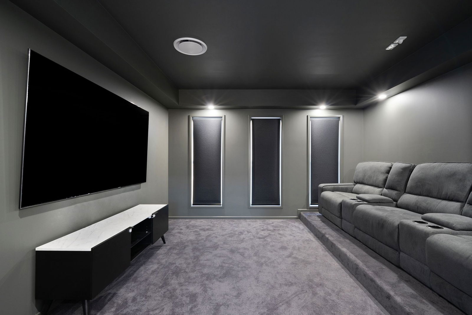 Entertainment at Its Finest: Experience cinematic bliss in the media room, complete with elevated seating and sophisticated decor—a true highlight of this remarkable home.